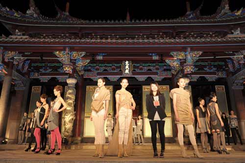 臺北市文化局舉辦第7屆漢字文化節(jié),“自成風尚”服裝秀17日晚以孔廟大成殿回廊作為伸展臺,共展出41套設計作品。主辦單位2011年首度邀請實踐大學服裝設計學系、輔仁大學織品服裝學系師生參與,由知名服裝設計師陳季敏擔任創(chuàng)意指導,以工作坊方式進行創(chuàng)作,并提供補助金給學生設計師。