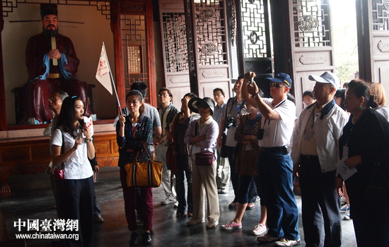 13日,參加情系巴蜀—兩岸文化聯(lián)誼行活動(dòng)的臺(tái)灣嘉賓參觀眉山“三蘇祠”。(中國(guó)臺(tái)灣網(wǎng) 張瑞宸 攝)