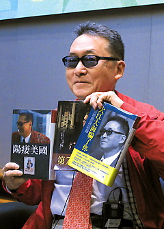 李敖到香港書展演講,展示三本近期作品。圖片來源:臺灣《聯(lián)合報》