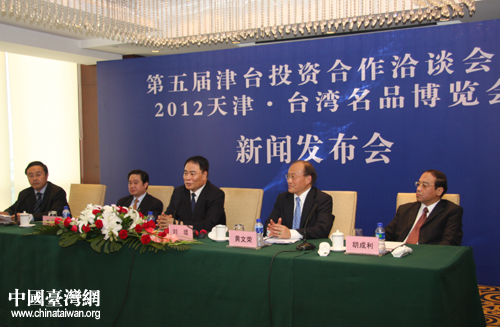 中國(guó)臺(tái)灣網(wǎng)7月5日天津消息 第五屆津臺(tái)投資合作洽談會(huì)暨2012天津·臺(tái)灣名品博覽會(huì)新聞發(fā)布會(huì)4日下午在天津舉行。天津市政協(xié)秘書長(zhǎng)劉琨、市政協(xié)副秘書長(zhǎng)李培生、臺(tái)北世貿(mào)中心副秘書長(zhǎng)黃文榮等人在會(huì)上介紹了本屆投洽會(huì)及博覽會(huì)的相關(guān)情況,并回答記者提問。
