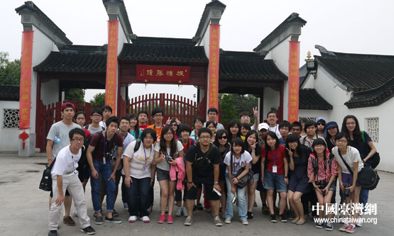 下午,來自兩岸的40多名青年大學(xué)生抵達(dá)蘇州,游覽了楓橋風(fēng)景區(qū)。“追尋歷史足跡,傳承中華文化,我們在蘇州!”圖為兩岸青年大學(xué)生在楓橋風(fēng)景區(qū)合影。(中國臺灣網(wǎng) 李丹 攝)