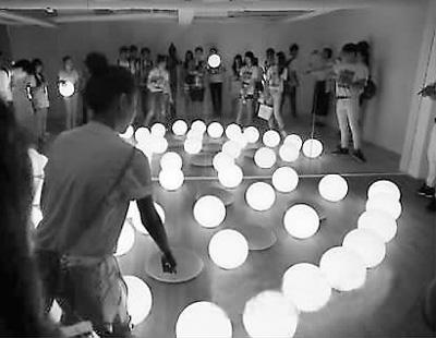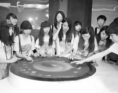 學(xué)生觀看米亞藝術(shù)中心的藝術(shù)裝置。王慧珊攝