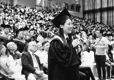 位于新北市的淡江大學(xué)舉行的畢業(yè)典禮上,來自福建廈門的大陸學(xué)生洪纓在發(fā)言。新華社記者 才 揚攝