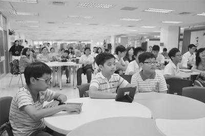 臺(tái)北小學(xué)生及家長(zhǎng)在認(rèn)真學(xué)習(xí)如何運(yùn)用“酷課云”制作電子書。