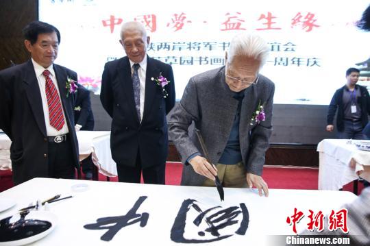 當(dāng)天,兩岸老將軍們在中國傳統(tǒng)文化上,找到了共同語言,揮毫潑墨,并和青年學(xué)子共同書寫“同心同德兩岸情,同宗同源一家親”、“風(fēng)雨重陽后,同舟共濟(jì)時”等書法作品。