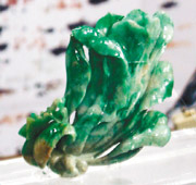 “臺北故宮”鎮(zhèn)館寶物翠玉白菜姊妹作品小白菜首度出宮展出。 (圖片來源:臺灣聯(lián)合報)