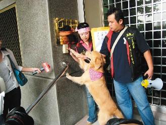 臺(tái)灣愛狗族昨天到板橋地檢署提出告發(fā),連小狗也一起按鈴,希望檢方盡速查明這起剝皮虐狗案。(圖:聯(lián)合報(bào))
