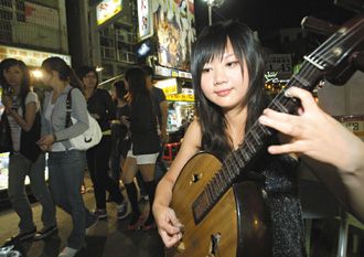 據(jù)臺灣《聯(lián)合報》報道,二十歲的林妍伶容貌出眾,皮膚白皙,短短一個月,已在高雄的六合夜市竄紅,民眾夸她是“彈琴美女”。