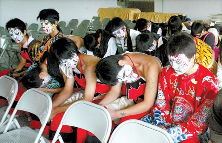 警方表示,這七十九人中有四十六人未成年,分別來(lái)自彰化、南投、臺(tái)中縣市,多半是中途輟學(xué)生,年紀(jì)最小的只有小學(xué)六年級(jí)。他們被帶回警局驗(yàn)?zāi)驎r(shí),有的身上還穿著表演服裝,臉上畫著大花臉,并露出大面積的刺青。