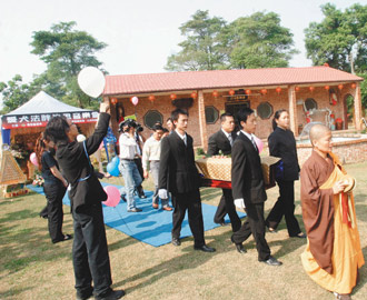 殯葬公司人員為法胖“接體”、洗身、換衣、豎靈、冰存,由六名法師輪流誦經(jīng),并選定安葬在臺(tái)南縣新化鎮(zhèn)一家寵物樂(lè)園。