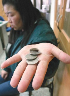 據(jù)臺灣《聯(lián)合報》報道,四十三歲的陳女昨天在警局翻遍全身口袋,僅有三十二元。“這是我全部的積蓄,要留給媽媽下一餐!闭f完,陳女淚水立刻滑下。警察見狀不忍,掏腰包買面包請她吃,她抹淚紅著眼狼吞虎咽,似乎餓壞了。