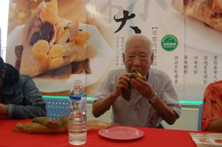 中新網(wǎng)5月16日電 端午節(jié)將至,臺灣中部一家超市舉行肉粽新品上市發(fā)表會,還推出頂級肉粽大胃王pk賽,吸引七十多人報名。有九旬老翁當場報名,搶當大胃王。