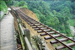 中新網(wǎng)10月15日電 阿里山森林鐵路再傳新災(zāi)情,該鐵路一路段12日下午發(fā)生走山,近70米路基轟然一聲,滑落近百米深的山谷中,僅剩鐵軌如吊掛鋼絲,懸掛半空中,所幸森鐵早已因風(fēng)災(zāi)受創(chuàng)未搶通而停駛中,無人傷亡。鐵路通車期因此從原來的11月底,延后到明年1月底。