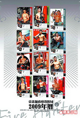 臺(tái)北縣消防局推出“猛男英雄月歷”。(圖:臺(tái)灣《蘋果日?qǐng)?bào)》)
