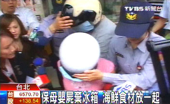 日前震驚臺灣社會的保姆冰嬰棄尸案件,臺檢方判保姆夫婦依照業(yè)務(wù)過失致死罪嫌,求刑4年。(圖片來源:臺灣TVBS電視臺)