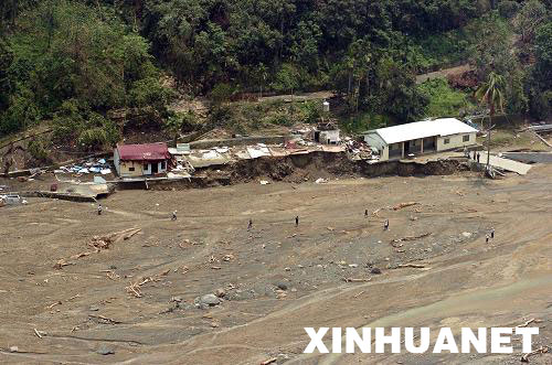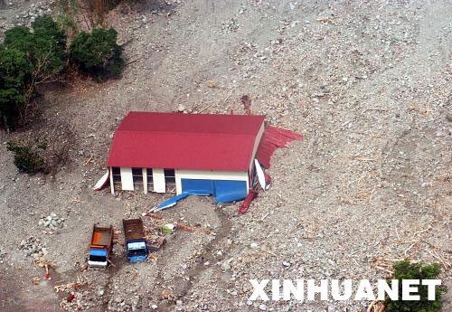 8月22日航拍的臺灣高雄縣那瑪夏鄉(xiāng)民生村受災(zāi)情況。