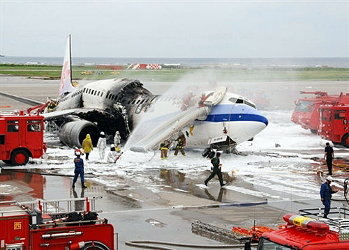 據(jù)“中央社”報(bào)道,華航CI-120班機(jī)的波音737客機(jī)于2007年8月20日在那霸機(jī)場(chǎng)降落駛往停機(jī)坪后,右主翼燃料箱漏油失火發(fā)生強(qiáng)烈爆炸,機(jī)身燒焦斷裂,幸好機(jī)上157名乘客(包括2名嬰兒)和8名機(jī)組員總共165人都安全逃生,未造成任何傷亡。