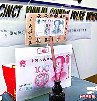 中國(guó)臺(tái)灣網(wǎng)9月2日消息 一群原從事特種行業(yè)的臺(tái)灣年輕男女,因景氣欠佳,酒店生意不好,集體轉(zhuǎn)行從事詐騙業(yè),專門(mén)騙大陸民眾,日前詐騙一名精明的臺(tái)商遭識(shí)破,臺(tái)商打反詐騙電話報(bào)警。臺(tái)灣警方昨攻堅(jiān)時(shí)發(fā)現(xiàn)嫌犯竟將人民幣影印放大,上香膜拜,就連電腦屏幕桌面也是人民幣圖像,不禁笑罵:“真是想錢(qián)想瘋了!”