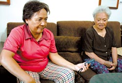 “原”味魔法阿嬤一手開(kāi)辦女巫課程的翁玉華(左)與媽媽翁菊治,利用錄音呈現(xiàn)完整祭詞作為課程教材。 臺(tái)灣《中國(guó)時(shí)報(bào)》圖