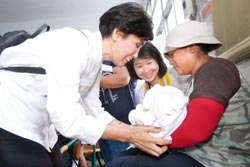 馬英九大姐馬以南(左)透露馬英九對于在風災(zāi)中遭責難,覺得“好人沒好報”。圖為馬以南日前到高雄縣慰問災(zāi)民。圖片來源:中國時報