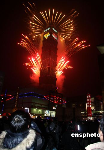 一月一日凌晨,臺北市在一0一大樓施放煙火,迎接2009年元旦的到來,吸引了大批市民觀看。 中新社發(fā) 陳立宇 攝
