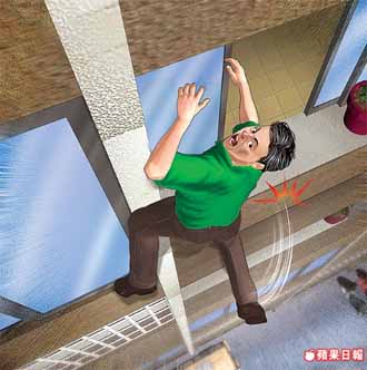 潘姓男子怕嫖妓身分曝光又趕著上班,冒險從窗戶攀爬下樓,不慎失足摔死。 來源:臺灣《蘋果日報》