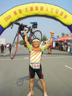 張炳榮昨天參加屏東東港大鵬灣51.5公里全臺(tái)鐵人三項(xiàng)競(jìng)賽,先游泳1.5公里,再騎自由車40公里,最后跑10公里,3小時(shí)7分的成績(jī)完成比賽。超級(jí)鐵人三項(xiàng)協(xié)會(huì)被他的毅力和精神感動(dòng),昨天頒給他榮譽(yù)VIP獎(jiǎng)。