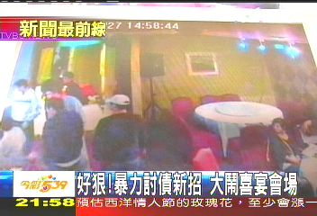 臺灣黑道暴力討債,大鬧喜宴會場。(圖片來源:臺灣TVBS電視臺)