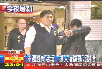 臺(tái)北縣警方破獲一個(gè)暴力討債集團(tuán),恐嚇被害人不還錢就活埋。(圖片來源:臺(tái)灣TVBS電視臺(tái))