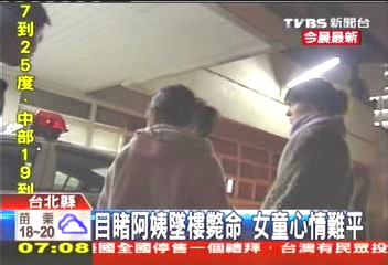 下午6點多,女童和林姓女子出門回家,發(fā)現(xiàn)忘了帶鑰匙,林姓女子打開樓梯間的窗戶,想爬到家里陽臺,但卻失足從4樓高摔下,頭先撞到雨棚再掉到1樓,當場斃命;小女童目擊一切,小小心靈受傷,恐怕一時半刻難以平復。