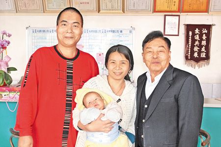 陳清溪(右一)與亡妻所生最小兒子陳茂堂今年已43歲,不僅比陸配妻子陳玉卿大10歲,更比“弟弟”大上42歲。中國時(shí)報(bào)圖