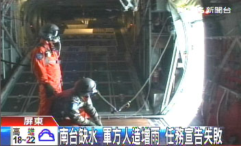 臺(tái)軍士兵在C130運(yùn)輸機(jī)上實(shí)施人工增雨作業(yè)。 來(lái)源:臺(tái)灣TVBS電視臺(tái)