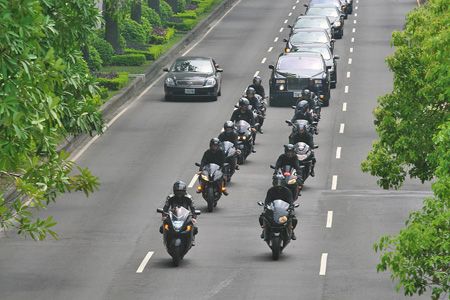 圖為“憨面”移靈車隊(duì)由12輛哈雷前導(dǎo),后面跟著30多輛雙B(奔馳、寶馬)。 圖片來源:臺灣《中國時報(bào)》