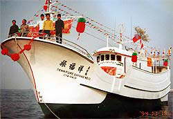 遭印尼漁工挾持的琉球籍漁船振福祥一六號(hào)。圖片來源:臺(tái)灣《中國時(shí)報(bào)》