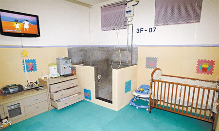 臺北女子看守所規(guī)定,若收容人有3歲以下子女無親友幫忙照顧,可申請帶入所內(nèi)一起作息,所內(nèi)保育室有空調(diào)設(shè)備,還有玩具、嬰兒床、學步車,有收錄音機播兒歌,有電視看兒童節(jié)目等影片,所方還會安排一名收容人,協(xié)助照顧剛生產(chǎn)的收容人。(中國臺灣網(wǎng) 陳佳慧)