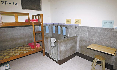 臺灣的看守所在夏天僅提供冷水、冬天洗澡時間才提供熱水,舍房里僅在上下鋪之間有一片固定的木板當書桌。臺當局“法務部”表示,由于經(jīng)費有限,改善監(jiān)所設(shè)備將以“女先于男”、“被告(指看守所)先于受刑人(指監(jiān)獄)”的順序進行。