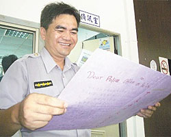 宜蘭縣警員看到學(xué)生們寫得滿滿的“感謝卡”非常感動(dòng)。圖片來(lái)源:臺(tái)灣《中國(guó)時(shí)報(bào)》