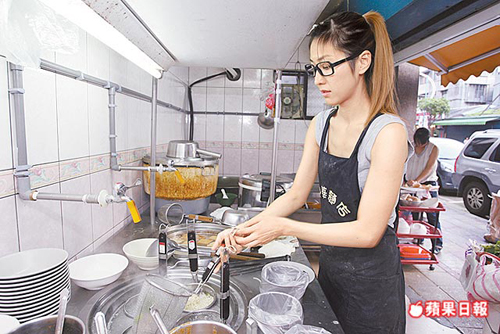 啾啾每天在酷熱的面攤工作10小時,被粉絲封為“面西施”。 來源:臺灣《蘋果日報》