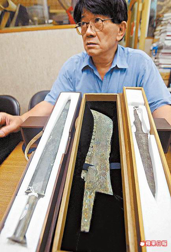 中國臺灣網(wǎng)7月13日消息 據(jù)臺灣《蘋果日報》報道,知名刀劍收藏家盧益村,昨驚爆收藏的古代名劍遭竊,他位在臺北市重慶南路三段的住家兼?zhèn)}庫,門鎖及監(jiān)視器遭歹徒破壞潛入,竊走49件收藏名劍,其中最貴的是市價700萬元新臺幣、商朝刀背鏤空紋青銅刀,損失共高達6000萬元,盧益村發(fā)現(xiàn)遭竊后報警,并懸賞300萬元要尋回失竊寶物。