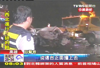 報(bào)道稱,這起重大車禍發(fā)生在昨晚10時(shí)30分左右,在高速公路10號(hào)西往東即高雄往旗山方向18.9公里的高雄縣燕巢路段,一輛由李姓男子駕駛的進(jìn)口轎車要往高雄方向,但據(jù)高速公路警察調(diào)查,李姓男子卻逆向上了高速公路,一路逆向行駛14公里。其間在20公里處一度被警察攔截下來(lái),就在警察下車時(shí),李姓男子趁機(jī)踩油門逃跑,未料又行駛1公里多,迎面撞上三輛閃避不及的小轎車。其中第一輛被撞小轎車?yán)锩嬗?個(gè)成年人和兩個(gè)小孩。