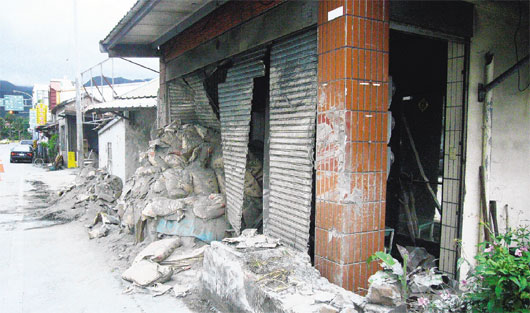 中國臺灣網(wǎng)7月27日消息 據(jù)臺灣《聯(lián)合報(bào)》報(bào)道,“你家又被撞嘍?”“是啊,又中了!”一輛滿載水泥的拖板車,昨天凌晨行經(jīng)宜蘭縣頭濱路三段大彎時(shí),車身甩尾,上百包水泥拋進(jìn)林基全的家。這是林家30年來、第200多次被撞,最高紀(jì)錄曾一天3撞,還有人包游覽車來看熱鬧。