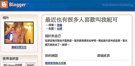 冒名妮可的部落格格主自我介紹寫著:“最近也有很多人喜歡叫我妮可!
