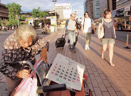 島內(nèi)貧富差距拉大,臺(tái)北街頭逛街人潮與在街邊販賣(mài)口香糖的弱勢(shì)民眾形成強(qiáng)烈對(duì)比。 來(lái)源:臺(tái)灣《中國(guó)時(shí)報(bào)》