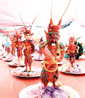 據(jù)臺(tái)灣媒體報(bào)道,大士爺圣誕千秋,蝦兵蝦將助威!為慶祝嘉義縣民雄鄉(xiāng)大士爺文化祭,大士爺廟今年推出藝術(shù)特展,邀請(qǐng)臺(tái)南果雕師傅陳天賞運(yùn)用廢棄龍蝦殼,手工制作72尊龍蝦兵將,組成宋江陣,尊尊面貌不同,讓參觀民眾大呼不可思議。
