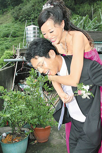 “凡亞比”臺(tái)風(fēng)攪局,苗縣泰安鄉(xiāng)青年傅立仁的喜宴必須商借6處地點(diǎn),他也要背著新娘到處敬酒,雖辛苦卻甜蜜在心頭。 來(lái)源:臺(tái)灣《中國(guó)時(shí)報(bào)》