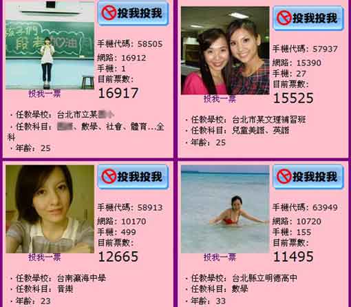 社交網(wǎng)站地圖日記營銷總監(jiān)廖家欣表示,繼前年成功推出美女老師票選走紅,且今年新聞事件炒熱美女老師話題。所以,今年教師節(jié)再推出“超人氣美女老師”票選,只要是各級學(xué)校老師、補教、才藝老師都可報名,希望透過網(wǎng)絡(luò)票選,讓更多人看到老師嚴厲外表下不為人知的一面。(中國臺灣網(wǎng) 劉海偉)