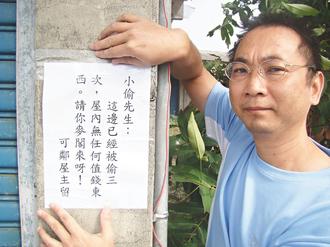 里干事鄭旭原岳母家連遭小偷光顧,他在前、后門張貼“求情海報(bào)”,請(qǐng)小偷手下留情,果然6年來(lái)未再遭竊。圖片來(lái)源:臺(tái)灣《聯(lián)合報(bào)》