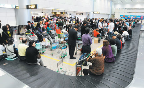 桃園機(jī)場(chǎng)昨天傍晚突然停電,第二航廈行李處理系統(tǒng)停擺,上千名旅客在入境行李轉(zhuǎn)盤(pán)處等候。圖片來(lái)源:臺(tái)灣《聯(lián)合報(bào)》