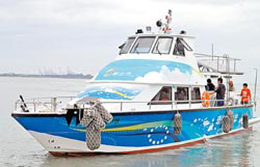 臺灣第一艘多功能曝氣船“先鋒一號”四日在淡水河畔正式亮相,未來將擔(dān)任淡水河環(huán)保尖兵的責(zé)任。圖片來源:臺灣《中國時報》