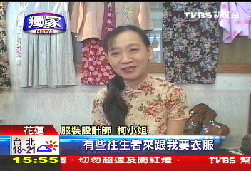 時(shí)尚壽衣的設(shè)計(jì)者。 圖片來源:臺(tái)灣TVBS電視臺(tái)